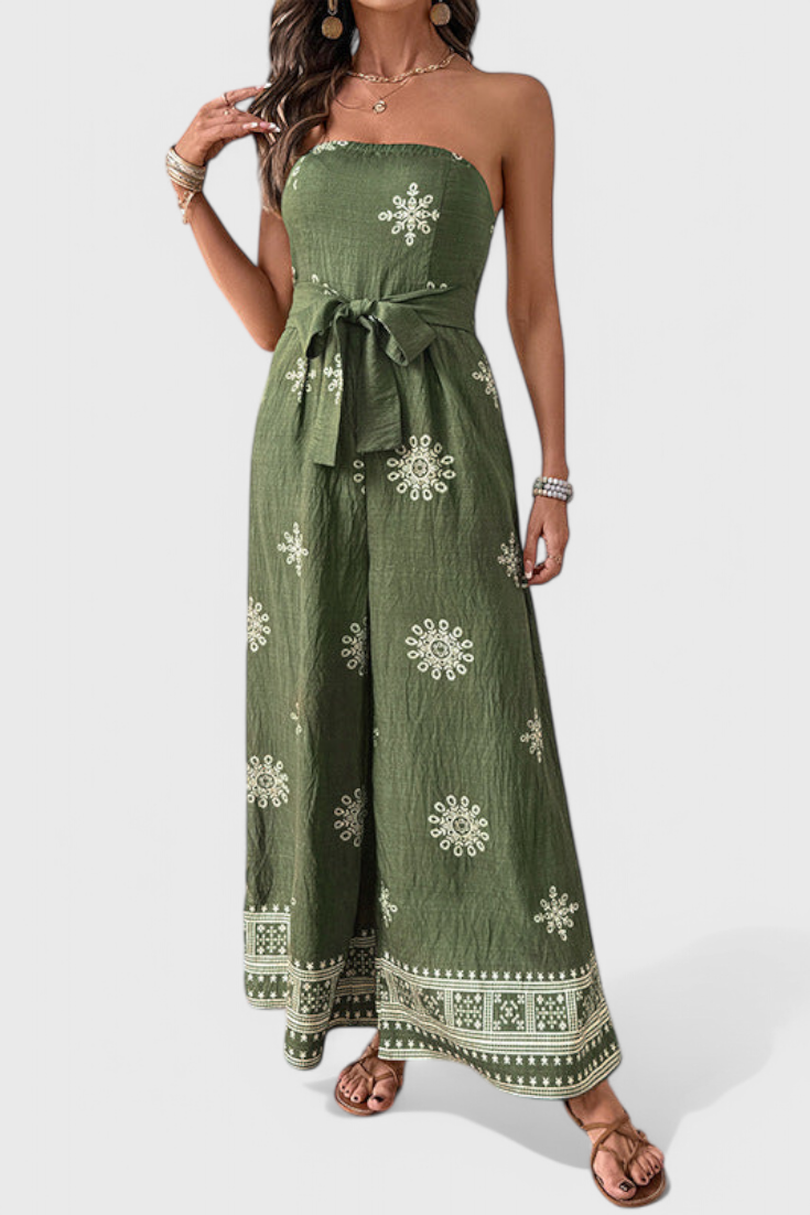 Ligero, audaz y fácil de usar—Zanele aporta un encanto sin esfuerzo a tu guardarropa de verano diario. Confeccionado con una suave mezcla de algodón y lino, este mono sin mangas presenta una cintura con lazo para definir la figura y pantalones de pierna ancha que se mueven con facilidad. Su estampado juguetón lo convierte en la elección perfecta para días soleados y salidas despreocupadas.