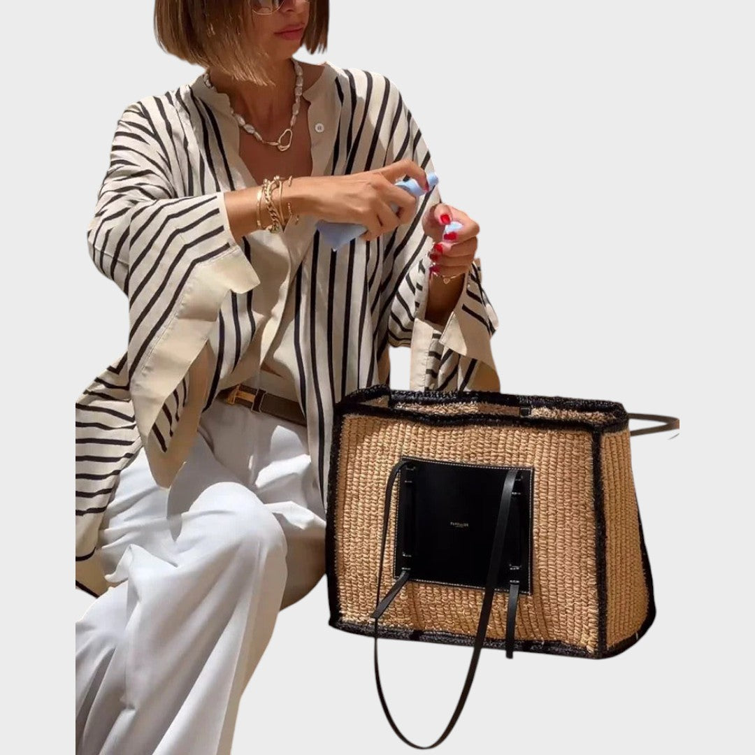 La camisa fluida Marbella combina sofisticación relajada con una versatilidad atemporal. Su diseño de rayas en tonos neutros crea un look chic y desenfadado, perfecto para cualquier ocasión.